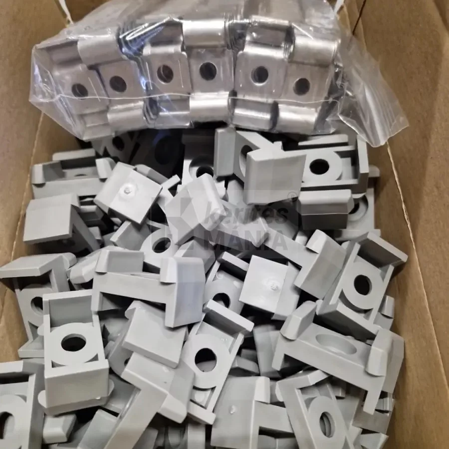 Táblás kerítés rögzítő szürke talpas, rozsdamentes lemezzel