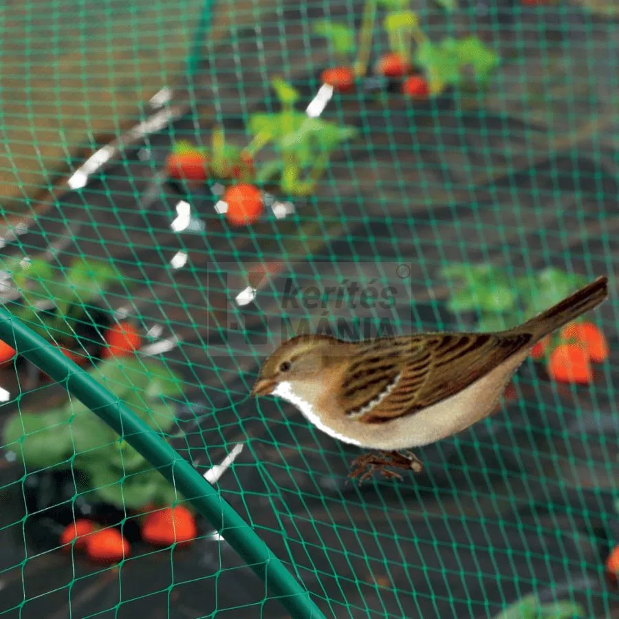Madárháló zöld színben, rombusz szemformával. Szőlő és gyümölcsösök, kiskertek, szabadföldi veteményesek védelmére ajánlott háló. 4 méter széles 250 méteres tekercsben.