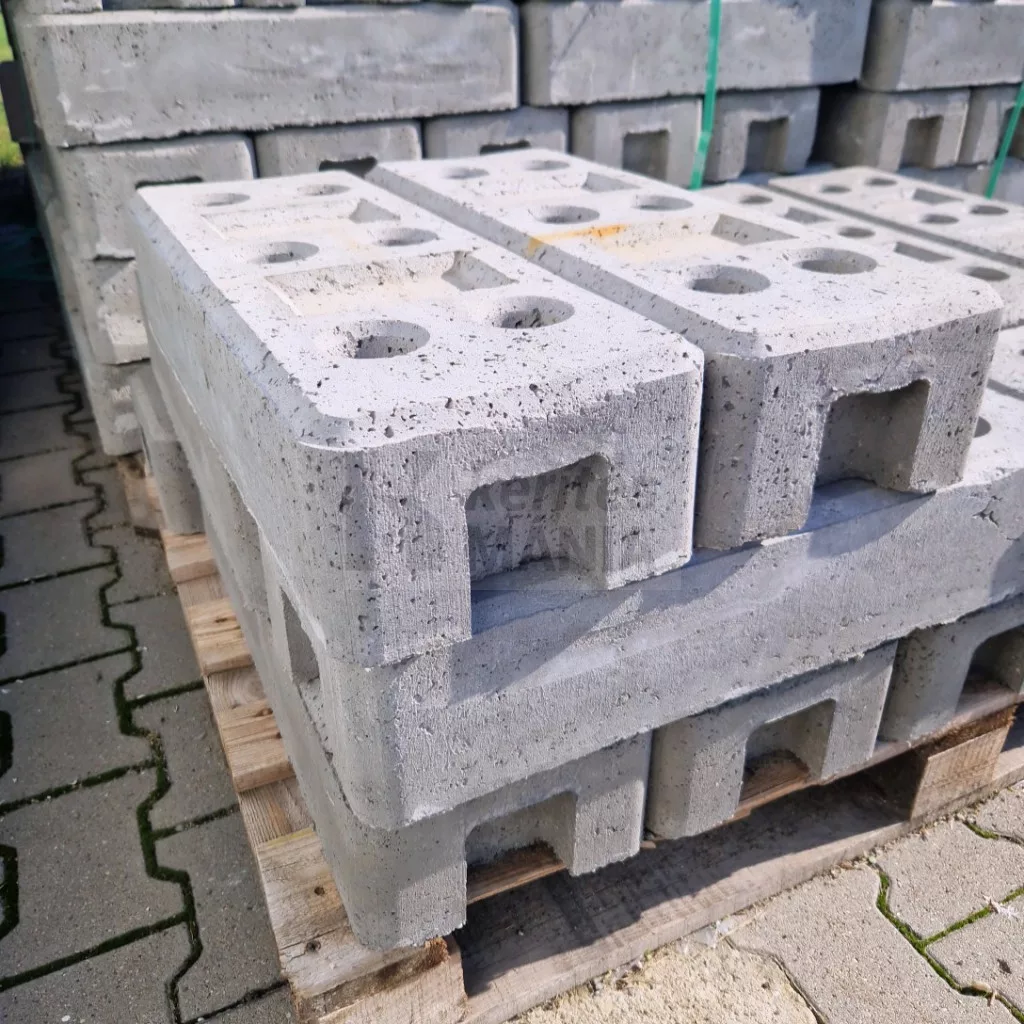 Masszív beton talp mobil kerítéshez, amely stabilan tartja a kerítéspaneleket ideiglenes elkerítéseknél. Nagy súlya biztos tartást ad szélben és forgalmas területeken is, miközben gyors és egyszerű telepítést tesz lehetővé.