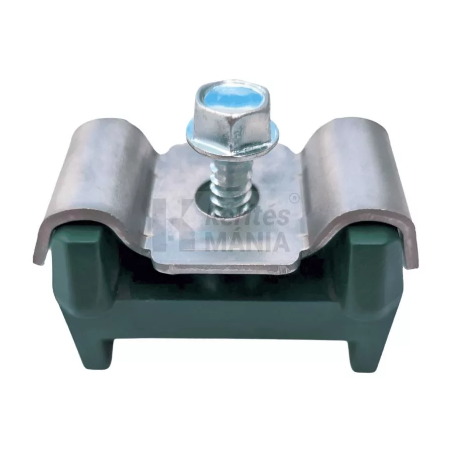 Táblás kerítés rögzítő zöld talpas, rozsdamentes lemezzel