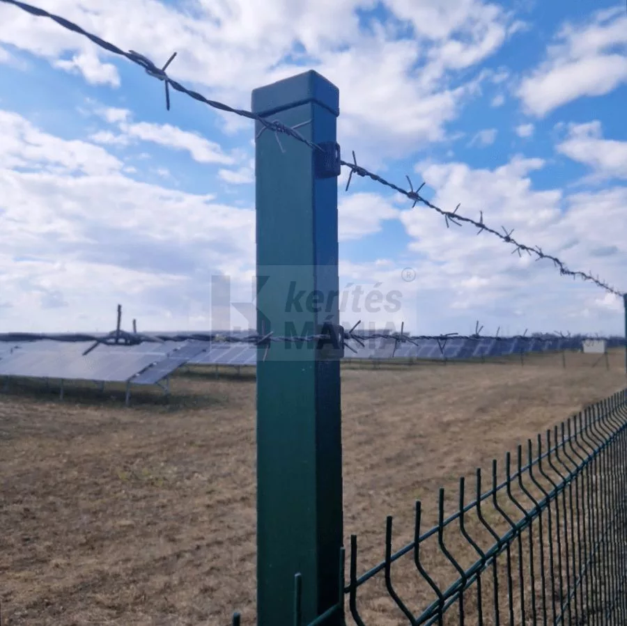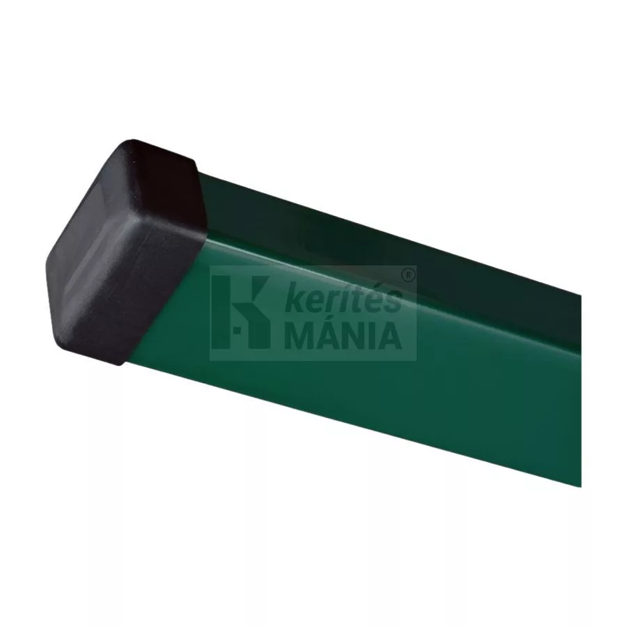 Zöld (RAL 6005) bevonatos zártszelvény kerítésoszlop 60x40 mm méretben, 3D és 2D táblás kerítésekhez, fekete műanyag kupakkal.