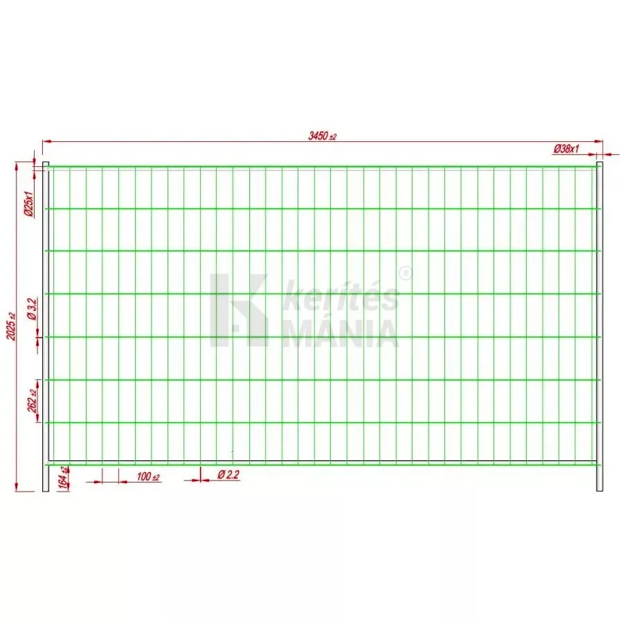 Táblás mobil kerítés elem cső keretben, ponthegesztett háló betéttel, 2070 mm x 3500 mm méretben.