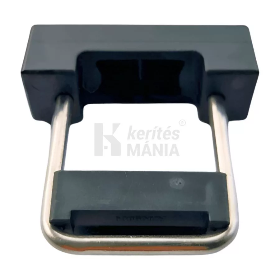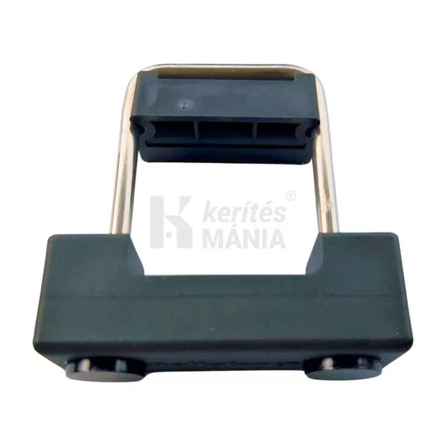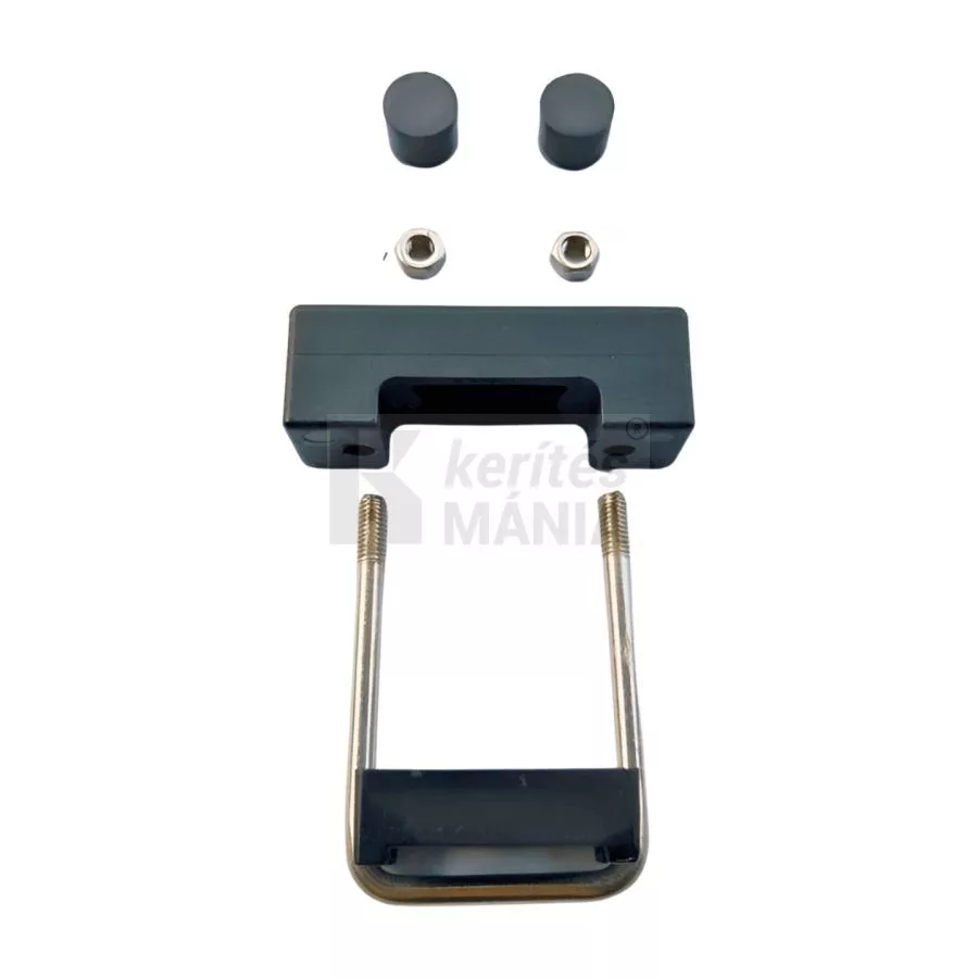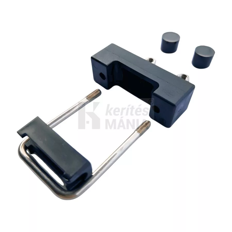 U alakú rozsdamentes acél rögzítő kengyel 40x40 mm-es oszlophoz. Menetes végű táblarögzítő kengyel, amely a kerítéspanelt az oszlop előtt átfogva rögzíti. Fekete színű, csak rongálással bontható, biztonságos kerítés tábla rögzítő.