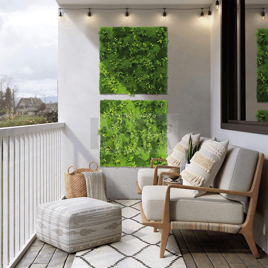 A zöldfal alkalmazható fürdőszobákban, nappalikban, hálószobákban és irodai környezetben, ahol természetes hatású, nyugodt atmoszféra kialakítása a cél. Kültéren teraszokon, erkélyeken, fedett kerthelyiségekben vagy pavilonokban is dekoratív megoldást nyújt. A gondozásmentes kivitel sokoldalú felhasználást tesz lehetővé.
