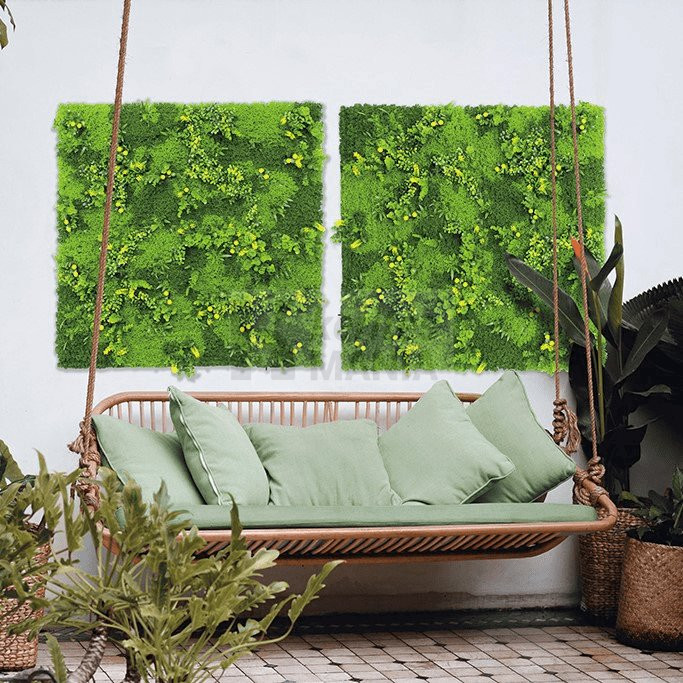 A VERTICAL TUNDRA – természetes hatású prémium zöldfal mohával különleges, mohára emlékeztető textúrájával nyugodt és letisztult látványt biztosít. Az 1 × 1 m méretű panel két árnyalatú felületével természetes, organikus összhatást kelt, amely jól illeszkedik modern és klasszikus környezetbe egyaránt. A zöld-sárga szín finom átmenetei élő növényzetet idéznek, miközben egységes felületet alkotnak.