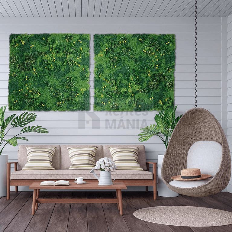 A VERTICAL TUNDRA – természetes hatású prémium zöldfal mohával élethű levelekkel és moharétegre emlékeztető struktúrával rendelkezik, amely vizuálisan lágy és természetes hatást nyújt. A panelek összekapcsolva homogén zöldfelületet alkotnak, de kisebb egységekben is alkalmazhatók. A zöld-sárga árnyalat harmonikus megjelenést biztosít beltéri és kültéri terekben egyaránt.