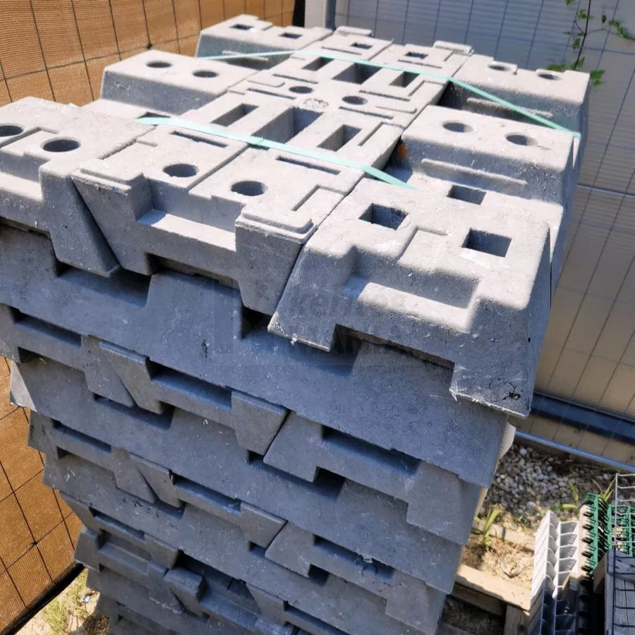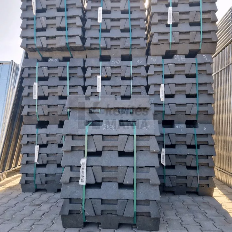 Mobil kerítés talp újrahasznosított műanyagból. Stabilan tartja a mobiltáblákat. Időjárásálló, könnyen kezelhető és gyors telepítést tesz lehetővé építkezéseken, rendezvényeken és forgalomterelésnél.