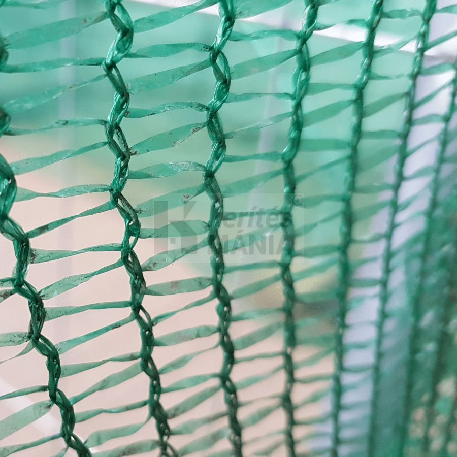 A Raschel zöld árnyékoló háló 3,6 m x 50 m UV-stabilizált, nagy sűrűségű polietilén (PE) anyagból készül, így jól bírja a kültéri igénybevételt. A tartósság mellett fontos előny a tömeg is: a háló mindössze 36 g/m², ezért könnyen mozgatható és kezelhető.