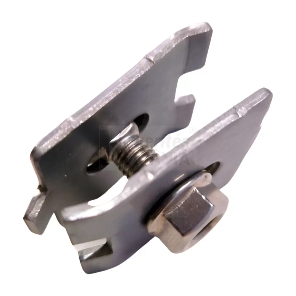 Rozsdamentes kerítéstábla rögzítő és táblatoltó elem 3D és 3D kerítés táblákhoz. Alkalmas kerítéstáblák rögzítésére, ha azok végei nem az oszlopnál illeszkednek egymáshoz.