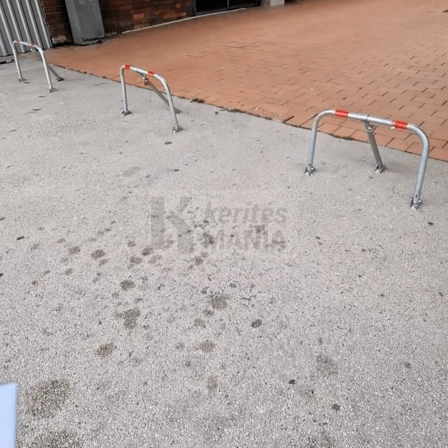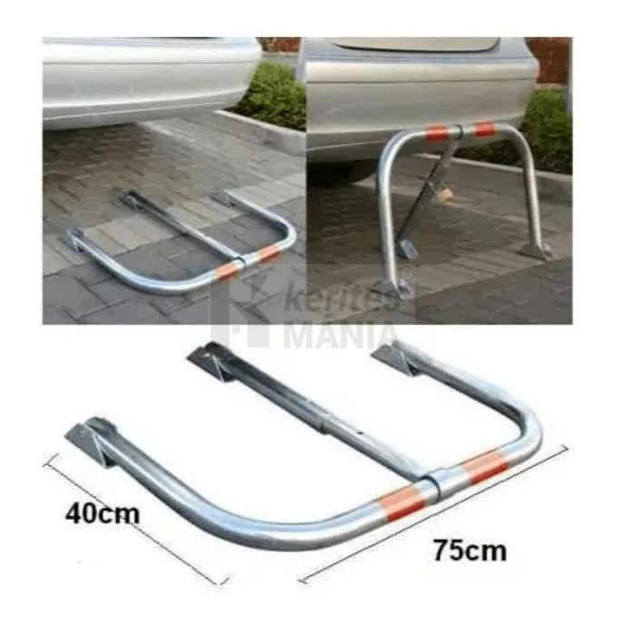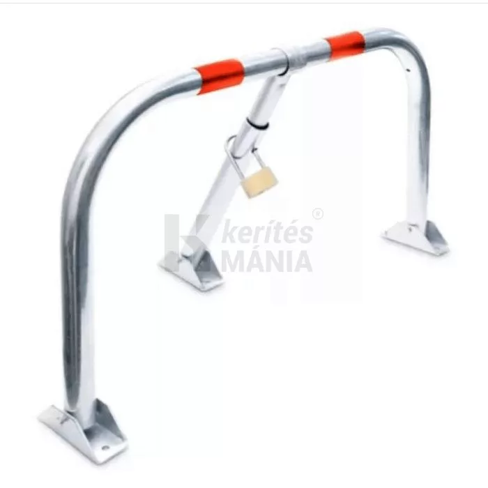 Parkolóhelyek, bejárók védelmét biztosító lehajtható, lakattal zárható parkolóőr. A feltüntetett bruttó ár 73 cm széles és 40 cm magas parkolásgátló kengyelre vonatkozik, a rögíztéshez szükséges csavarokkal szállítjuk.